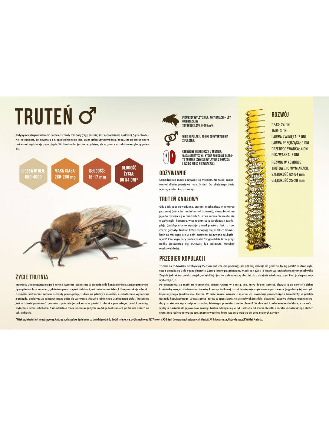 Krótki opis ciała trutnia ( wymiary, masa itd.), informacje o jego rozwoju, długości życia, diecie i życiowej roli - to znajdziesz na naszej tablicy edukacyjnej o trutniu.