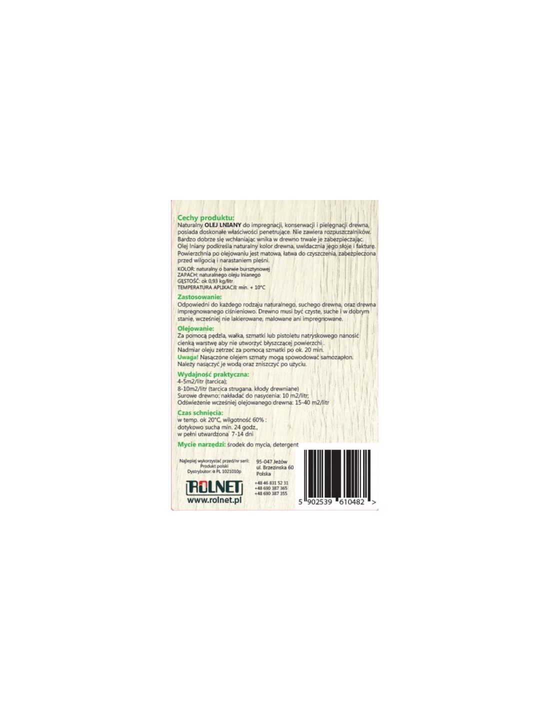 Olej lniany to środek do impregnacji, konserwacji oraz pielęgnacji drewna. Jest to środek całkowicie bezpieczny dla pszczół z racji naturalnych składników. Posiada bardzo dobrą zdolność do wnikania w drewno. Powierzchnia po zastosowaniu oleju lnianego staje się matowa i zabezpieczona przed wilgocią i narastaniem pleśni.
