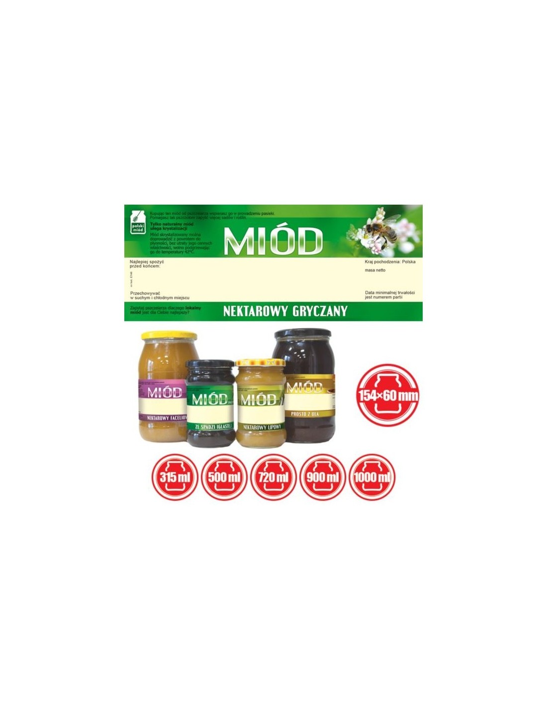 ETYKIETY NA MIÓD NEKTAROWO-GRYCZANY 154X60 (DUŻE) – 100 SZT.