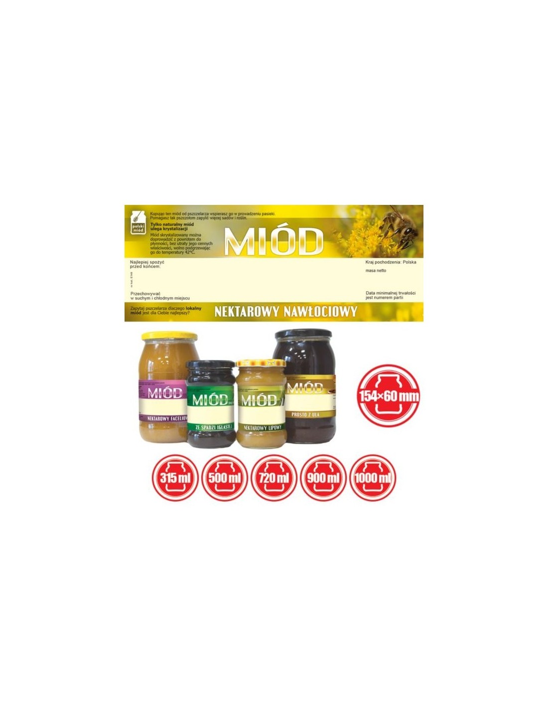 ETYKIETY NA MIÓD NEKTAROWO-NAWŁOCIOWY 154X60 (DUŻE) – 100 SZT.