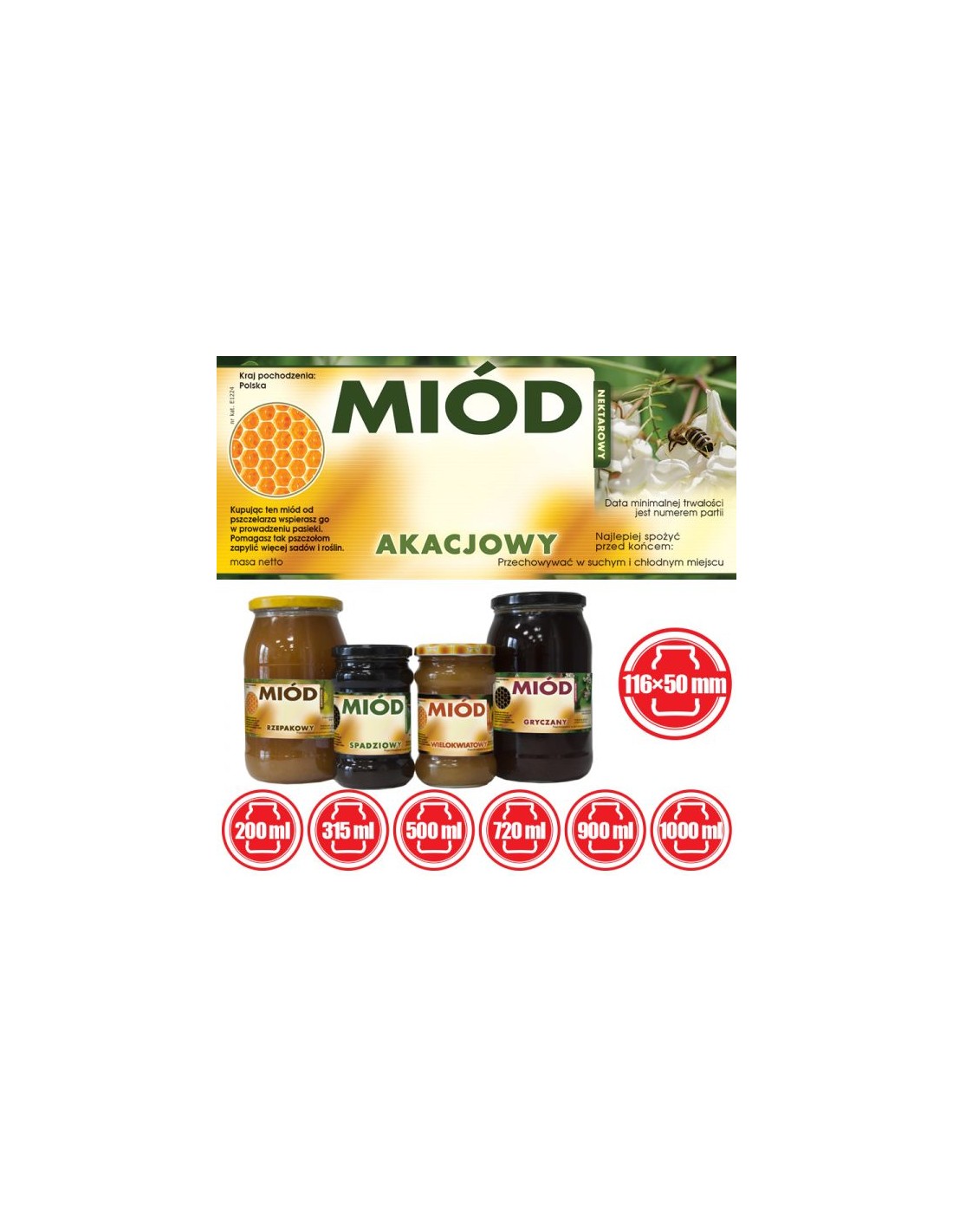 ETYKIETY NA MIÓD AKACJOWY 116X50 – 100 SZT.