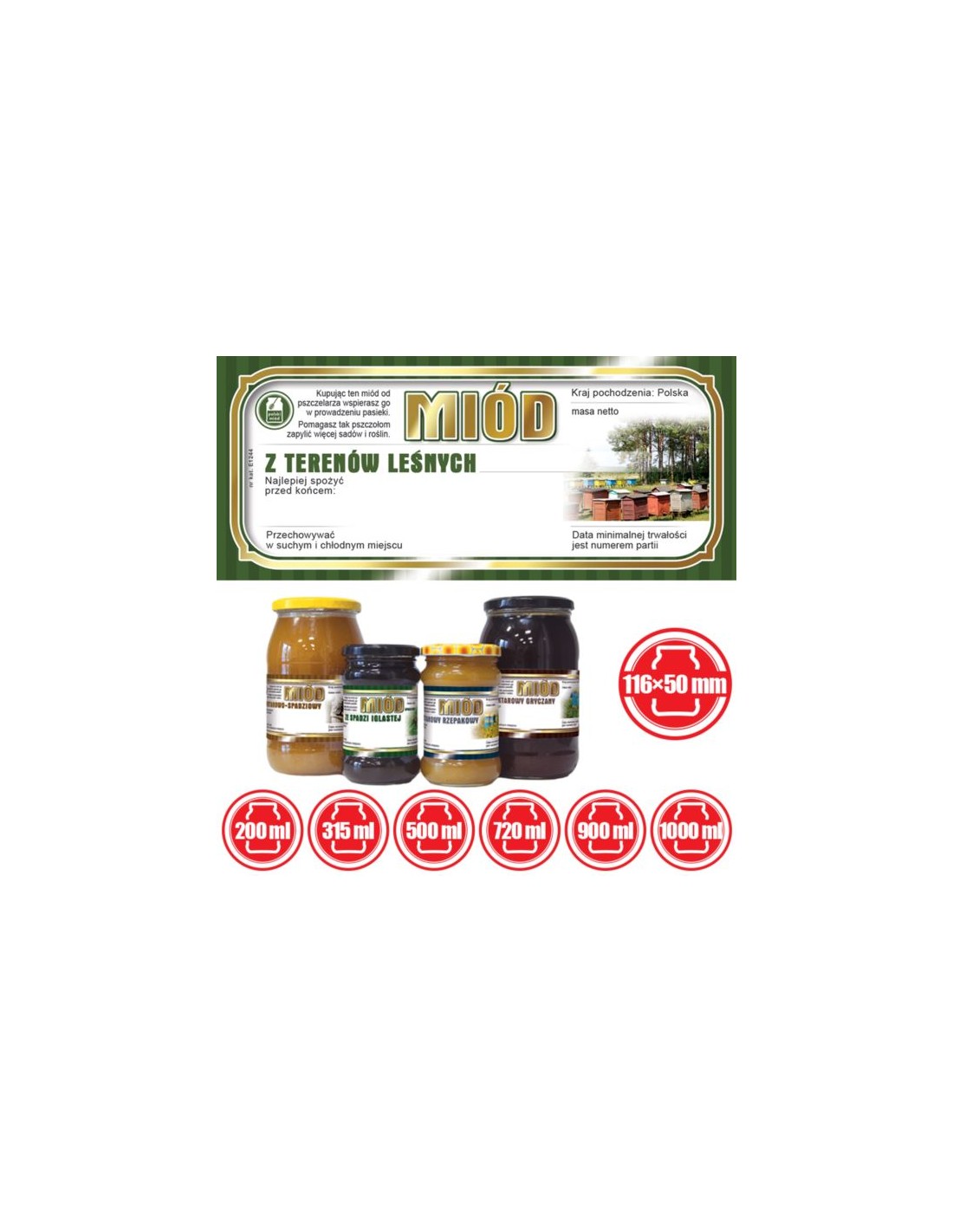 ETYKIETY NA MIÓD Z TERENÓW LEŚNYCH 116X50 – 100 SZT.