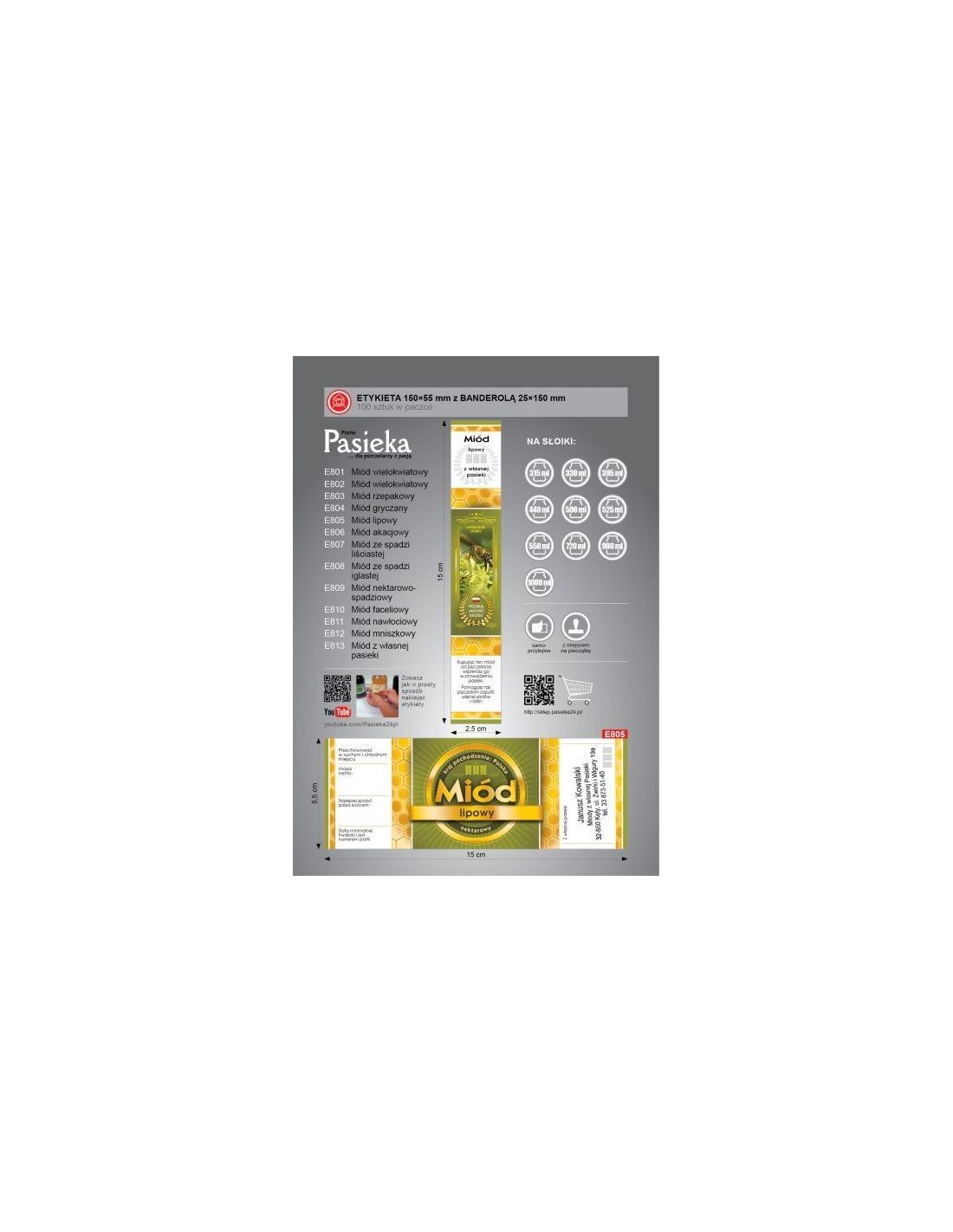 Paczka etykiet samoprzylepnych na miód z banderolą.