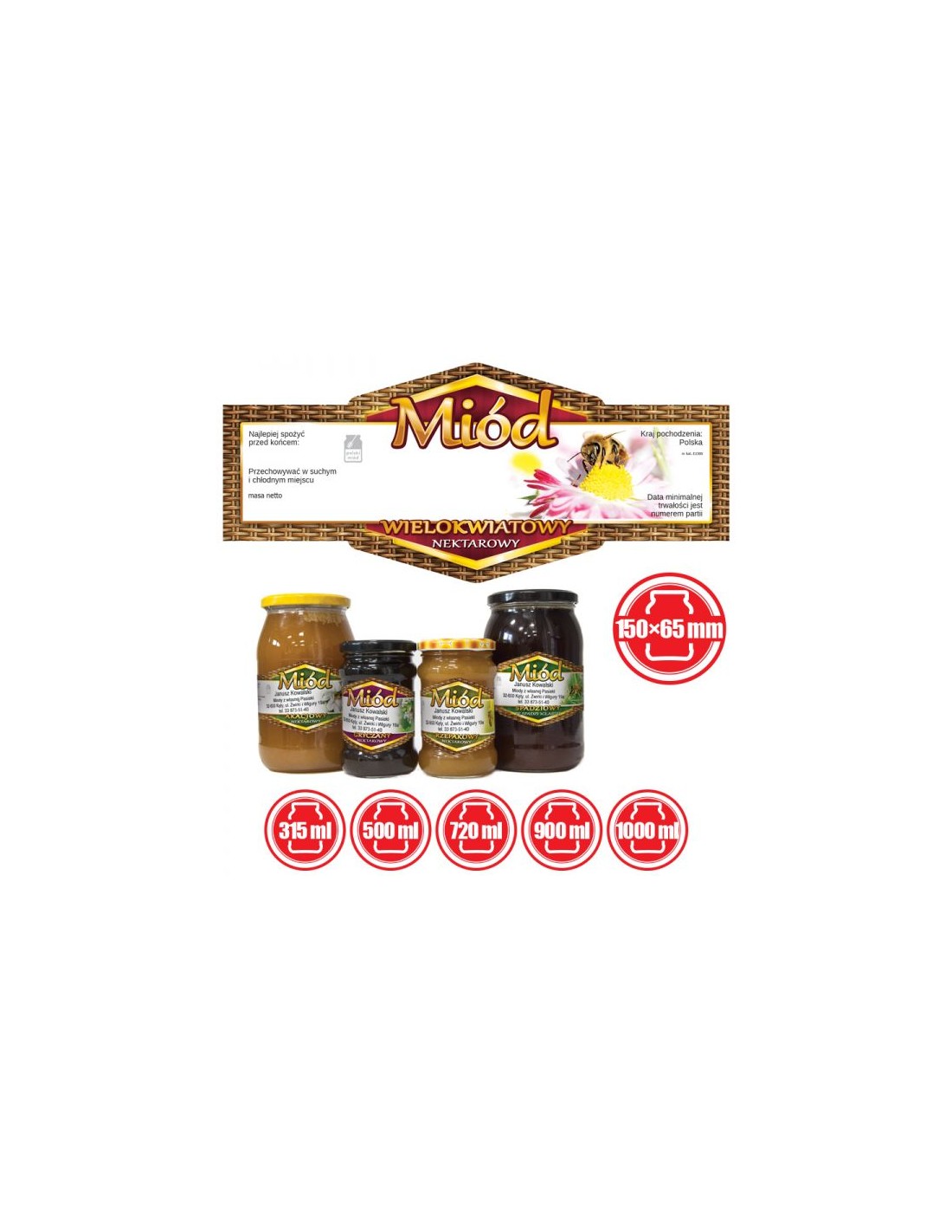 ETYKIETY NA MIÓD WIELOKWIATOWY 150X65 – 100 SZT.