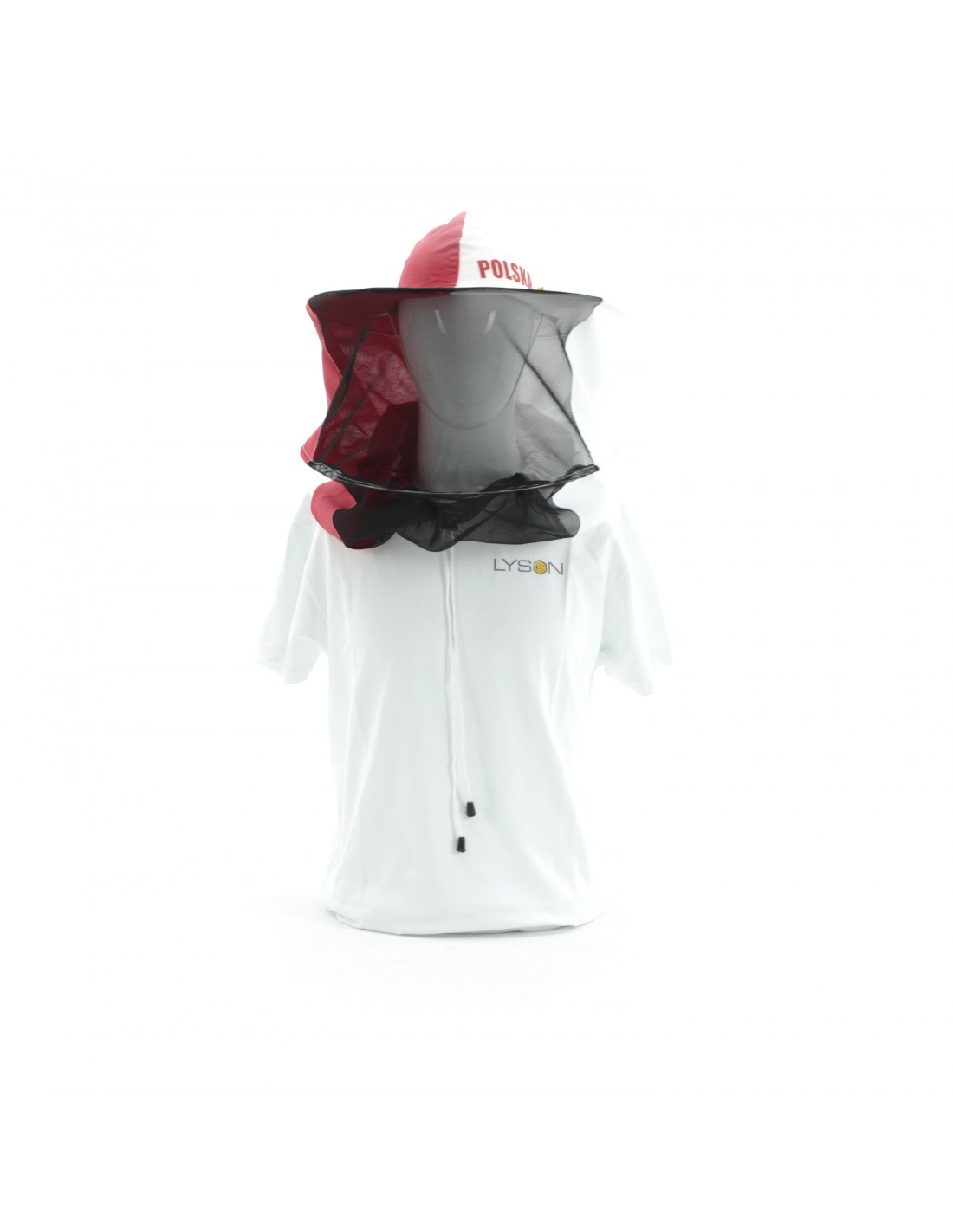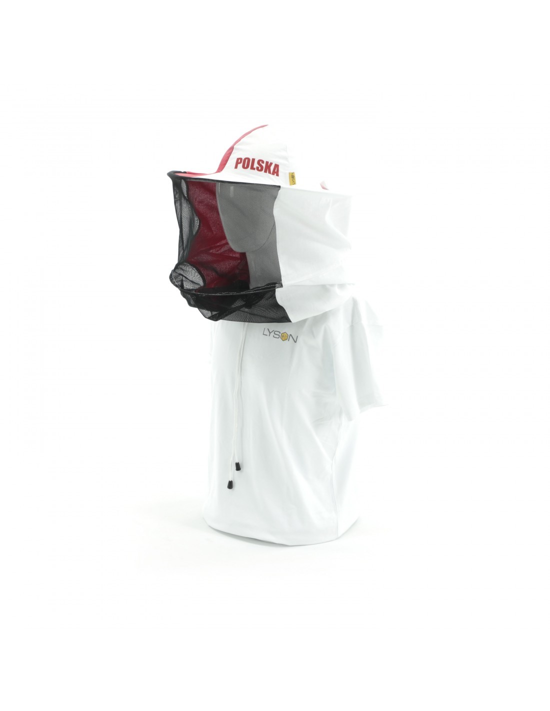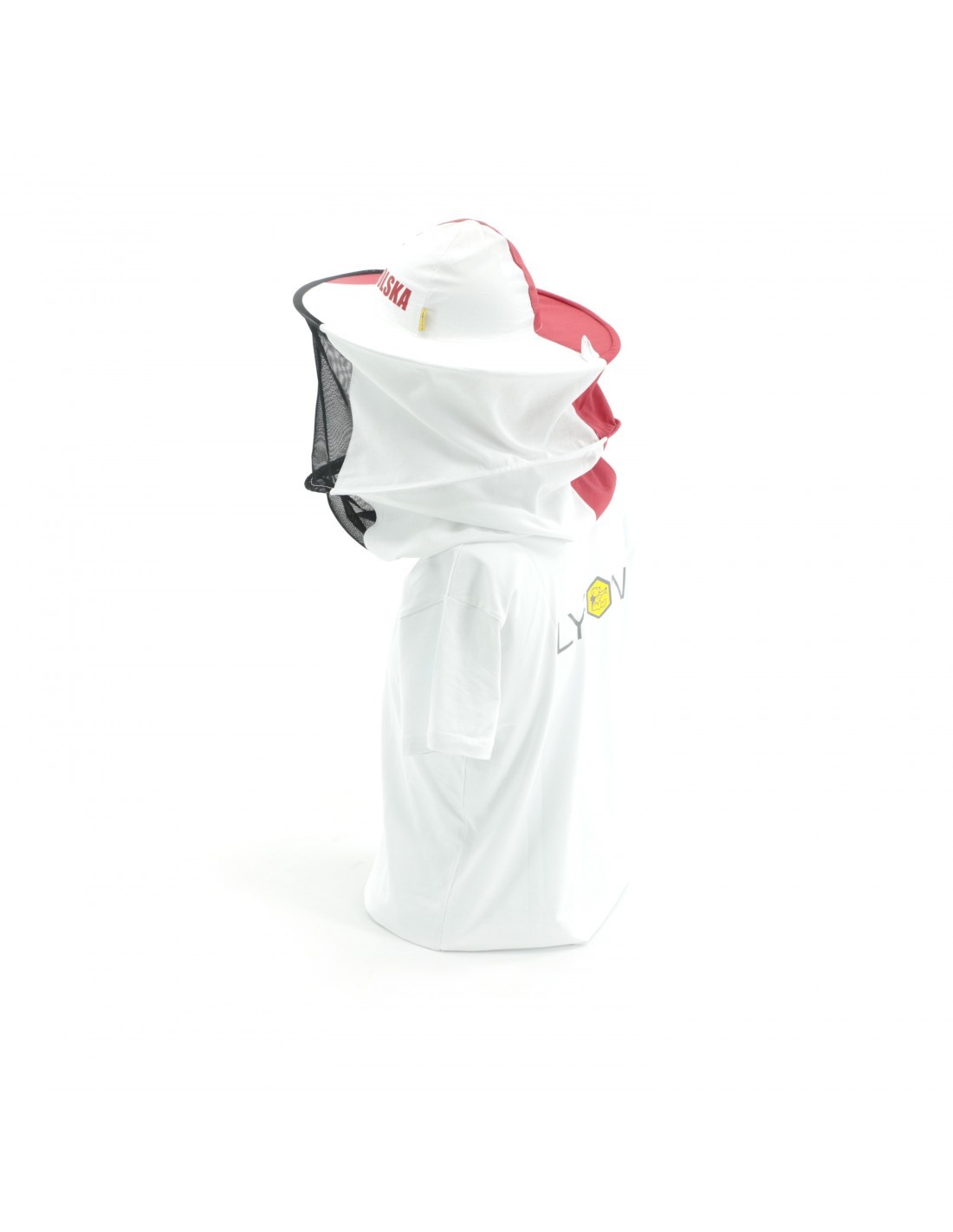 KAPELUSZ PSZCZELARSKI, BAWEŁNIANY - Z TYŁU PŁUTNO - BIAŁO-CZERWONY