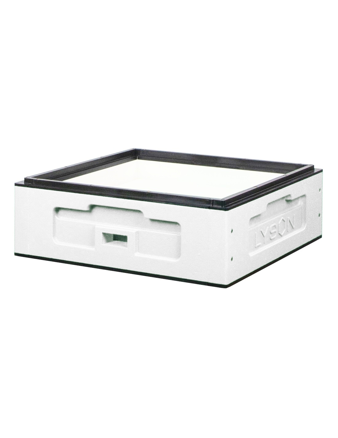 Każdy element styropianowego ula, w tym półkorpus wielkopolski, charakteryzuje się lekkością i wytrzymałością. Zewnętrzne części korpusu są zabezpieczone farbą odpowiednią do tego typu materiału, a wnętrze nie wymaga malowania. Uchwyty ułatwiają montaż i demontaż nadstawki pełnej ramek z miodem, jak również jej przenoszenie.