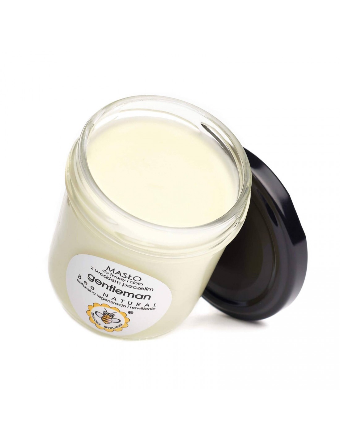 Odżywczo-kojące masło do twarzy i ciała z woskiem pszczelim o lekkiej, puszystej konsystencji musu i świeżej, dodającej energii, prawdziwie męskiej nucie zapachowej. Idealne masło dla panów szukających naturalnego kosmetyku o intensywnym działaniu kosmetycznym, które szybko i skutecznie natłuści, nawilży i ukoi męską skórę, a przy tym nada jej niezwykle atrakcyjny aromat. Masło skomponowane jest z głęboko odżywczych, rewitalizujących skórę tłuszczy: masła shea, oleju kokosowego, oliwy z oliwek, oleju z awokado, które wzbogacono maceratem kwiatów rumianku w oleju z pestek winogron o znakomitych właściwościach łagodzących i kojących. Nawilżająco-regenerująco-ochronny wosk pszczeli oraz przeciwstarzeniowa i przeciwzmarszczkowa witamina E są wspaniałym dopełnieniem receptury tego masła.