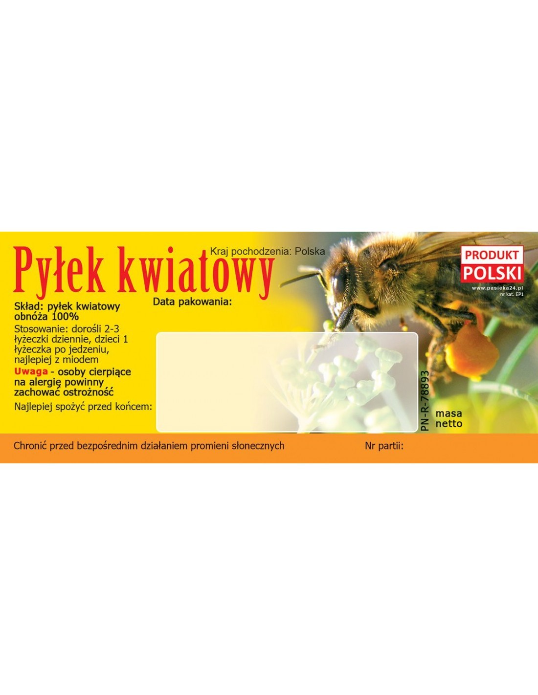 Paczka etykiet samoprzylepnych na pyłek pszczeli.