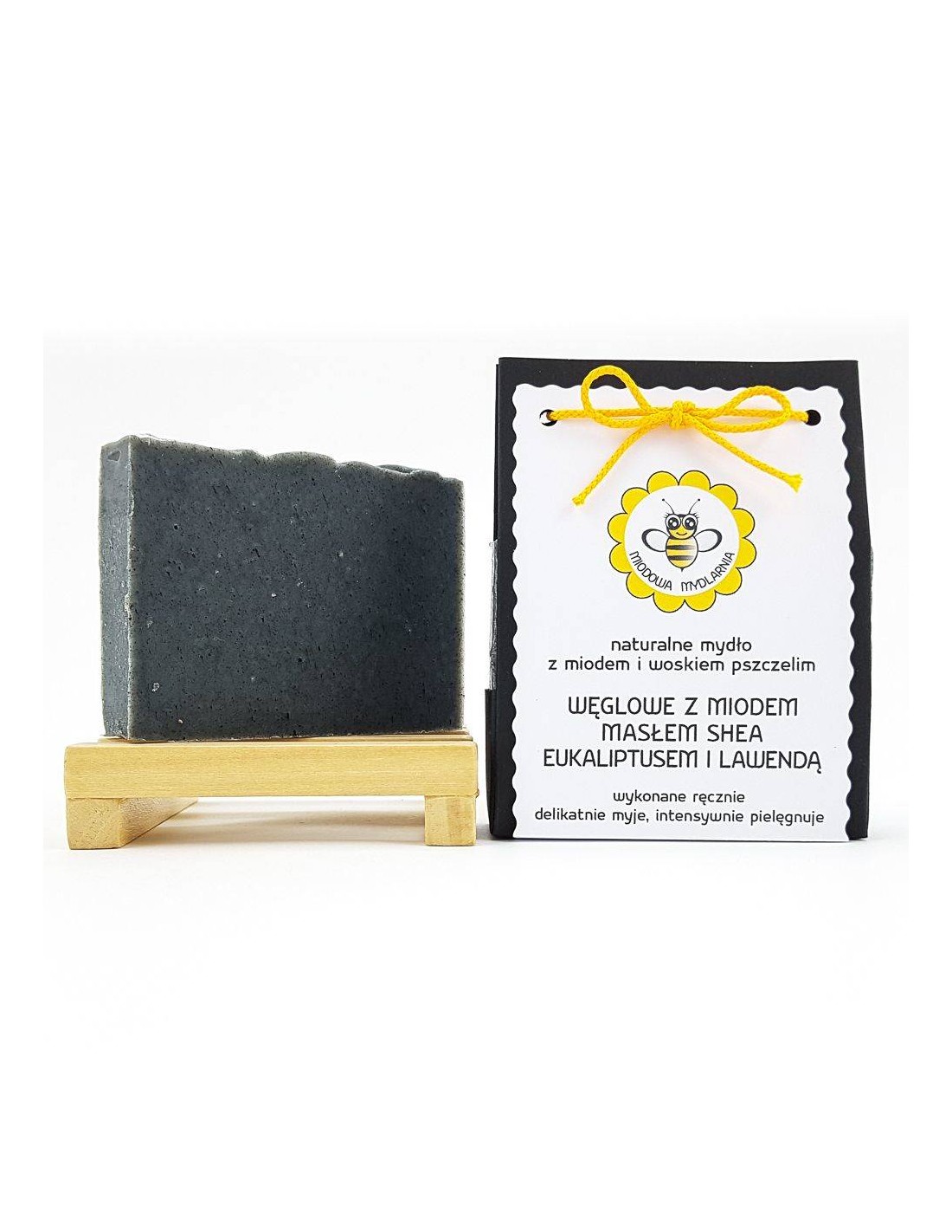 MIODOWA MYDLARNIA - MYDŁO - WĘGLOWE Z MIODEM, MASŁEM SHEA, EUKALIPTUSEM I LAWENDĄ - 100G