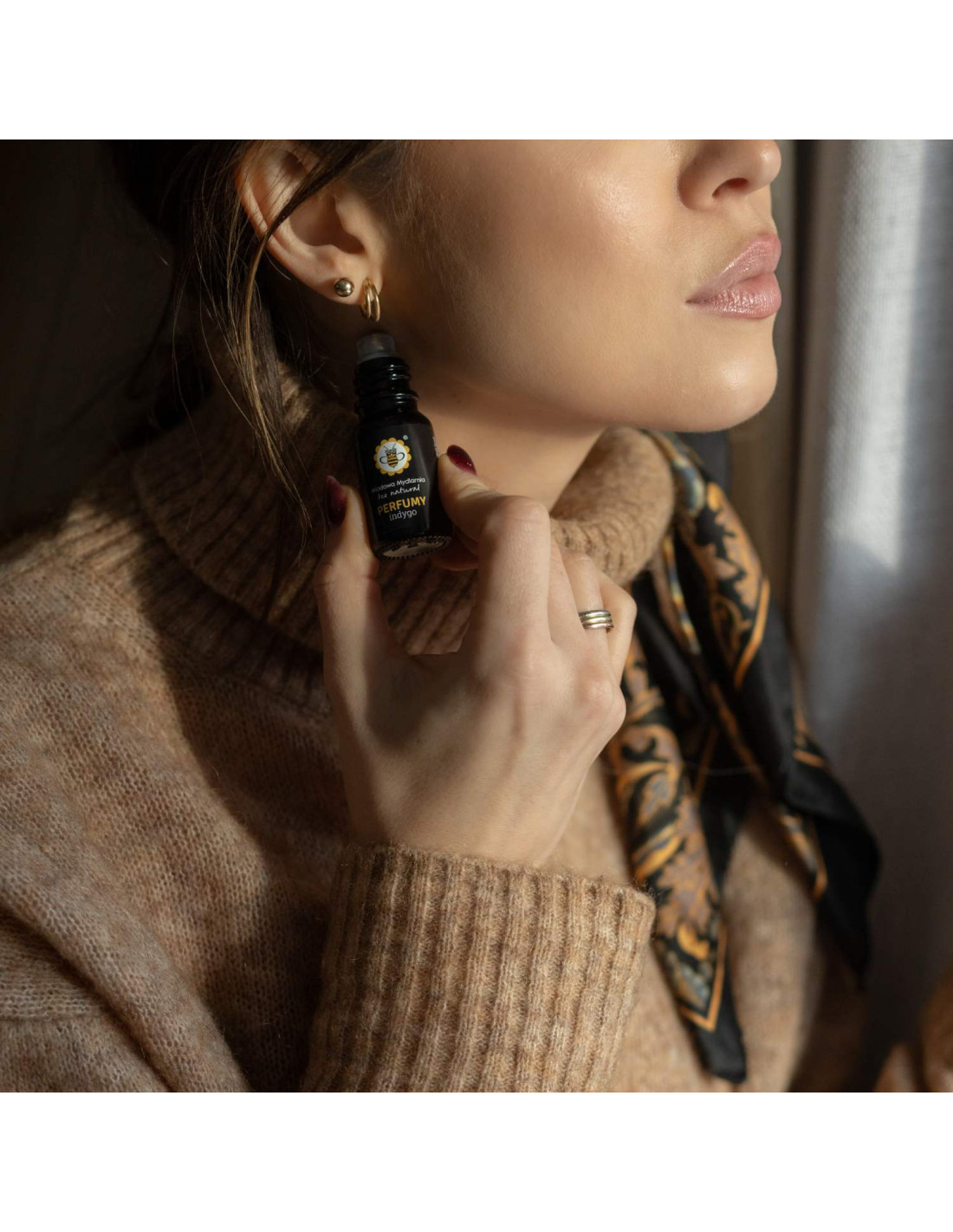 Opakowanie: Perfumy znajdują się w buteleczce z ciemnego szkła z aplikatorem typu roll-on (z metalową kulką), co zapewnia niezwykłą wygodę aplikacji. Idealne, by mieć je zawsze przy sobie i odświeżać zapach w dowolnym momencie. Schowaj w torebce, kieszeni marynarki lub trzymaj w biurowej szufladzie.