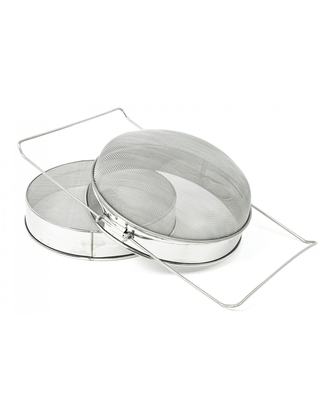 Sito podwójne ze stali nierdzewnej to rozbudowana wersja sita do filtrowania miodu. Jego konstrukcja charakteryzuje się wypukłym kształtem dolnego sita, który zapewnia maksymalną efektywność podczas filtrowania.