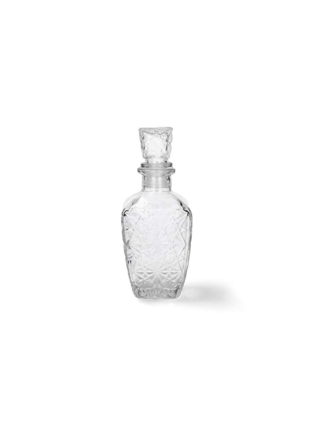 Zdobiona szklana karafka o pojemności 415 ml, z uszczelnionym korkiem, idealnie eksponuje i chroni domowe nalewki i wina, dodając elegancji Twojemu barkowi.